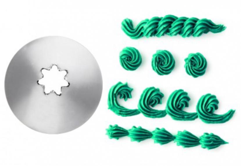 Star techniques and drop flowers; the finely cut teeth create decorations with many ridges.