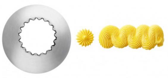 Star techniques and drop flowers; the finely cut teeth create decorations with many ridges.