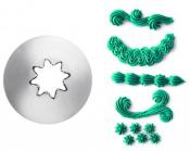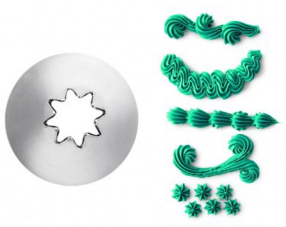 Star techniques and drop flowers; the finely cut teeth create decorations with many ridges.