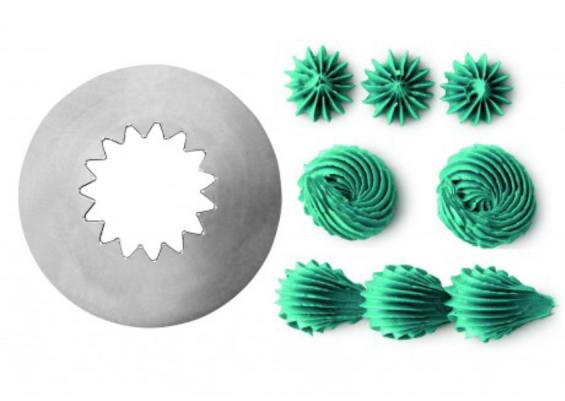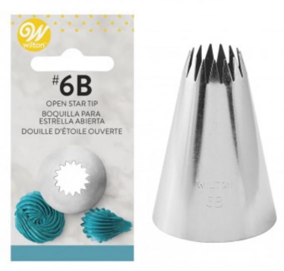 Wilton open star tip, 6B is made of stainless steel. It is dishwasher safe and ideal for making designs on cakes. Easy to fit and use.