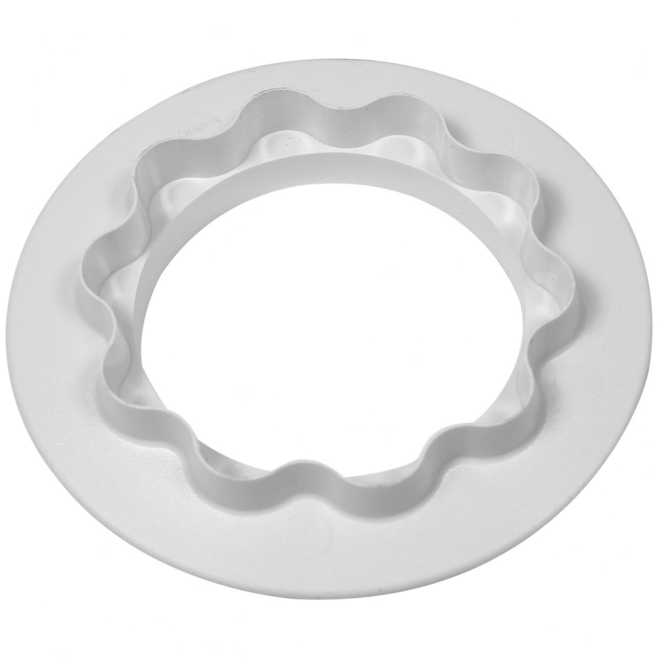 An extremely versatile cutter great for cutting out pastry, icing, cookie dough, marzipan or fondant. Create perfectly shaped items with this double-sided round and wavy edged cutter. Made of durable plastic, easy to use simply press into fondant or dough and remove to reveal the finished design. Sizes: XXX large round 58mm (2.3"), XXX large wavy 68mm (2.7"). - RW704