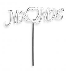 Club Green - Silver Mr & Mrs with Heart on Stem - 8x2cm - Cake Topper Pick